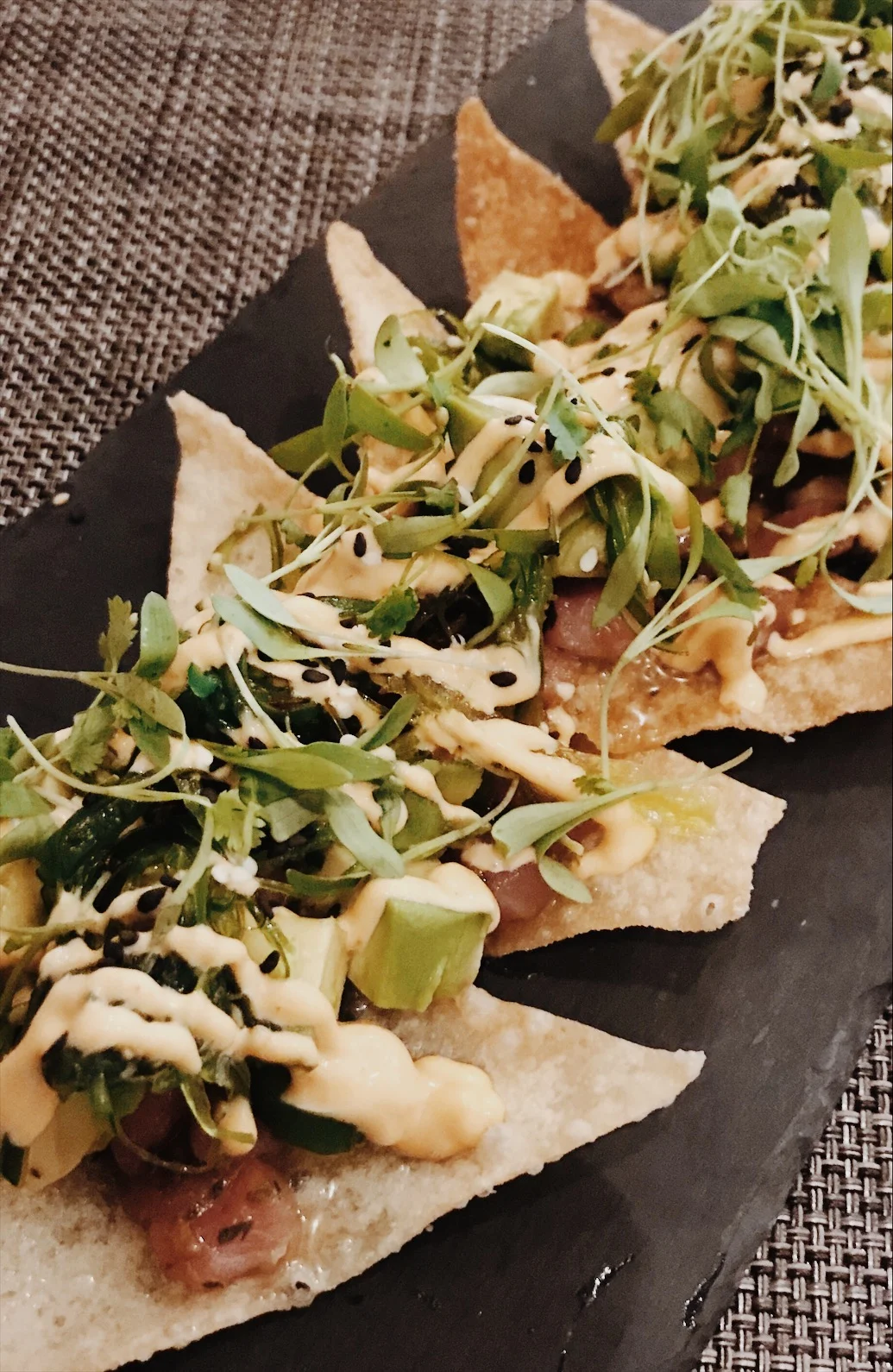 My husband and I indulged in lamb, scallops, lobster, steak, salmon, sea bass and my favorite the POKE NACHOS (emphasis on this dish) Fresh tuna, jalapeño, sesame oil, avocado, seaweed, fried wontons, cilantro. I mean come on, it’s a gourmet appetizer at its finest. If you want to keep it light the heirloom tomatoes with goat cheese and pecans are also wonderful (honestly you can’t go wrong). Your dining experience doesn’t stop in kitchen you have the option of dining in your room or enjoying your meal on the roof top by the pool in a covered cabana.